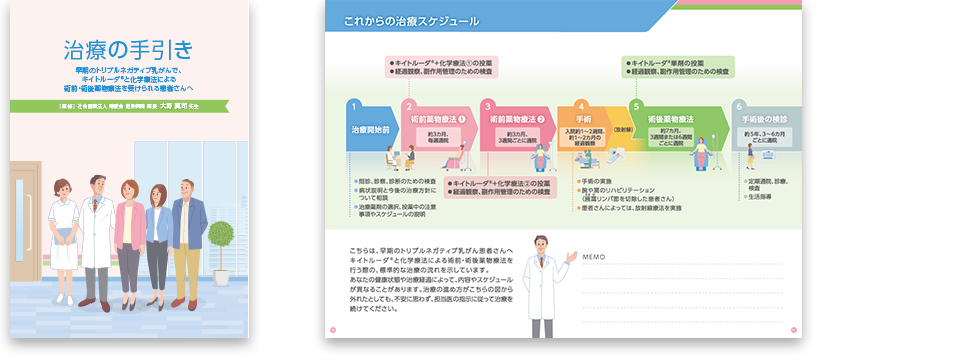 キイトルーダ®の治療を受ける早期のトリプルネガティブ乳がんの患者さん向けに、初期治療全体の流れをまとめた「治療の手引き」をご用意しています。