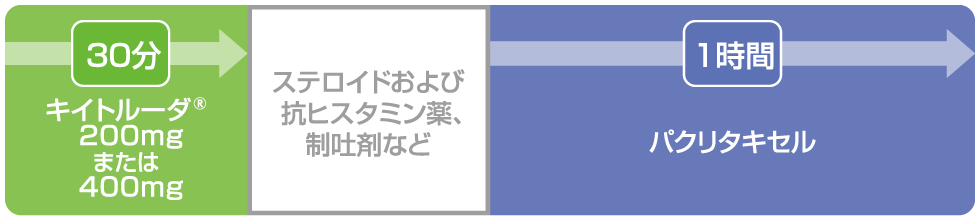 キイトルーダ®200mgまたは400mgを約30分かけて静脈内へ点滴します。その後、パクリタキセルを投与します。