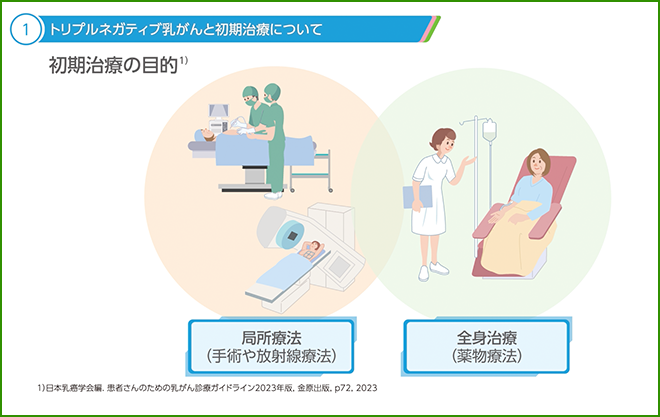トリプルネガティブ乳がんとは、どのようながんで、どのような初期治療を行うのかを解説します。(1分53秒)