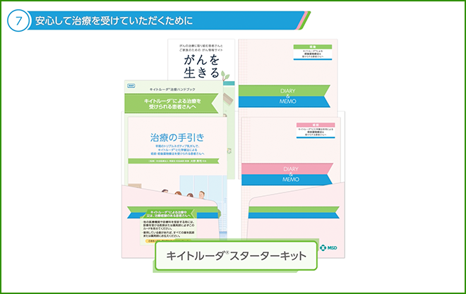患者さんが安心して治療を受けられるようご用意しているスターターキットの内容や、公開しているWebサイトについて紹介します。(1分18秒)
