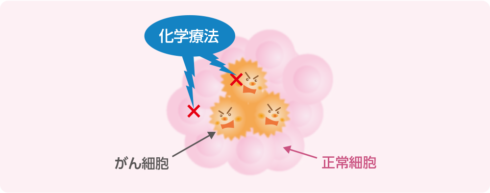 化学療法は、活発に分裂しているがん細胞の増殖を阻止したりすることで、がん細胞を死滅させる治療です。