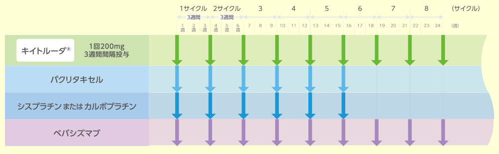 キイトルーダ®+化学療法+ベバシズマブ併用治療の投与および点滴のスケジュール例