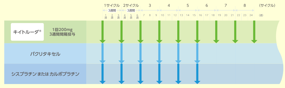 1サイクル3週間とし、各サイクルの1日目に投与を開始し、2週目と3週目はお休みします。
