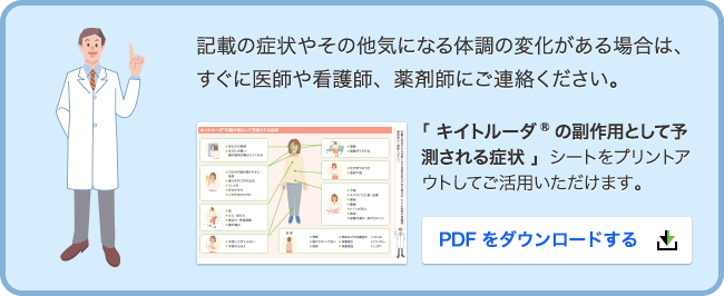 症状のあらわれ方には個人差があり、発見が遅れると重症化することや継続的な治療が必要となる場合があります。あらかじめ副作用の種類や症状を知っておくことは、副作用の早期発見と対処につながります。