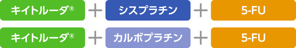 キイトルーダ®と化学療法の併用療法では、がん細胞に対するT細胞の攻撃を強める免疫療法のキイトルーダ®と、がん細胞を直接攻撃する化学療法(プラチナ製剤と5-FU)を組み合わせて治療します。異なる作用の薬を使ってがん細胞を攻撃するため、双方の治療効果が期待できます。