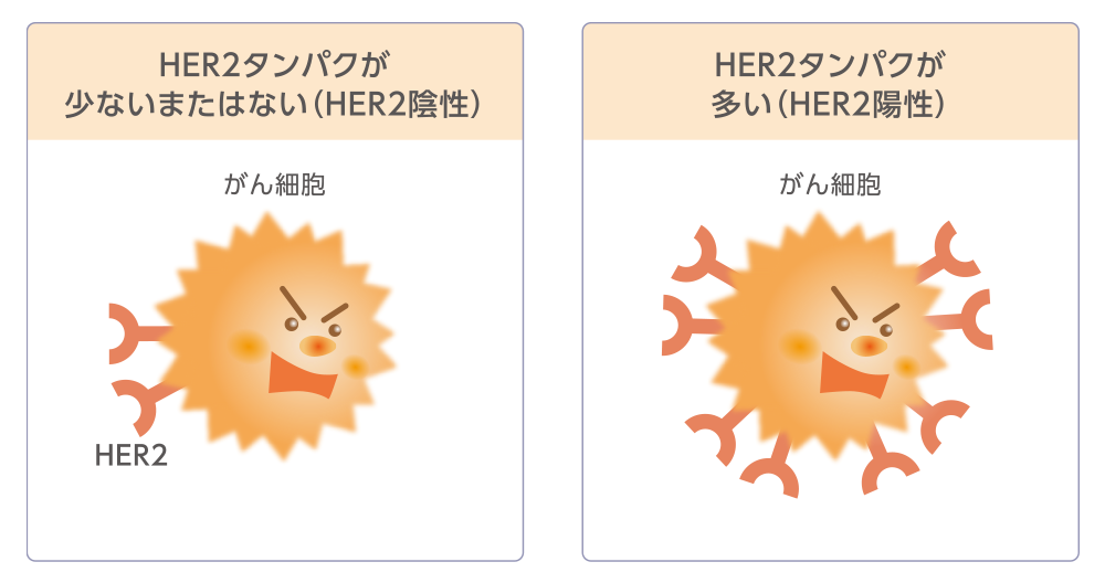 トラスツズマブはHER2タンパクを標的とするため、HER2タンパクをたくさんもっているがん細胞にのみ効果を発揮します。そのため、がん細胞がもつHER2タンパクの量を調べ、トラスツズマブの使用が適しているかどうかを判定する必要があります。