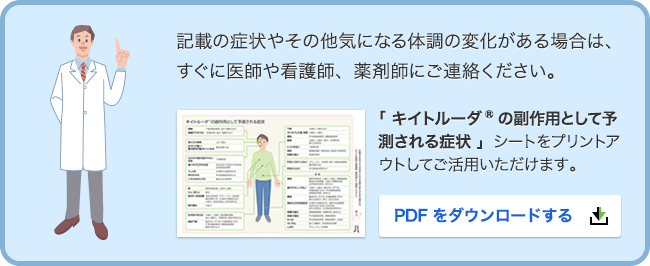 気になる症状があれば、担当の医師や看護師、薬剤師にご相談ください。