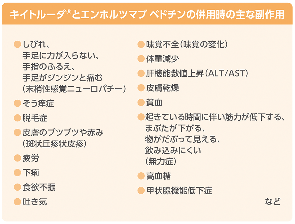 キイトルーダ®とエンホルツマブ ベドチンの併用時の主な副作用