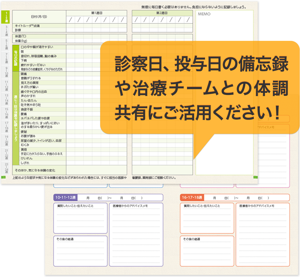 この Web サイトでは、キイトルーダ®による治療を受けられる方に安心して治療に臨んでいただくため、キイトルーダ®の作用や治療スケジュール、また、副作用や治療中の生活で注意していただきたいことをご紹介しています。